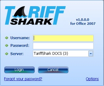 The Login form is used to log into TariffShark.