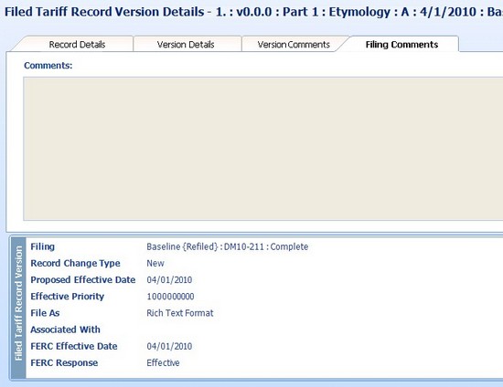 Figure 4:Filed Tariff Record Version Details: Filing Comments