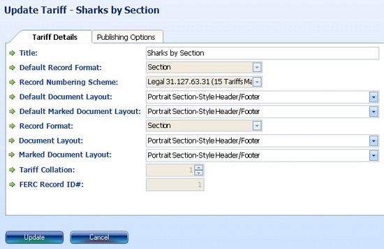 Figure 2:Update Tariff form: Publishing Options tab