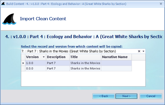 Import clean content from a version of a DIFFERENT tariff record: Select the Tariff Record from the drop-down and then the Tariff Record Version from the grid whose content will be copied.