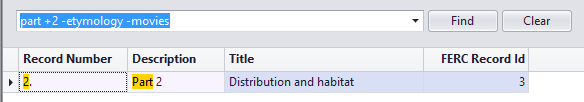 Figure 1: Displays rows that contain search criteria