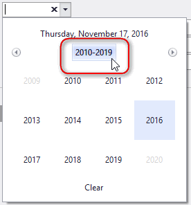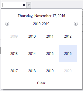 For relatively recent dates, you may move forward or backward month-by-month and then select a date. Clicking "Clear", clears the data currently selected and exits the calendar.